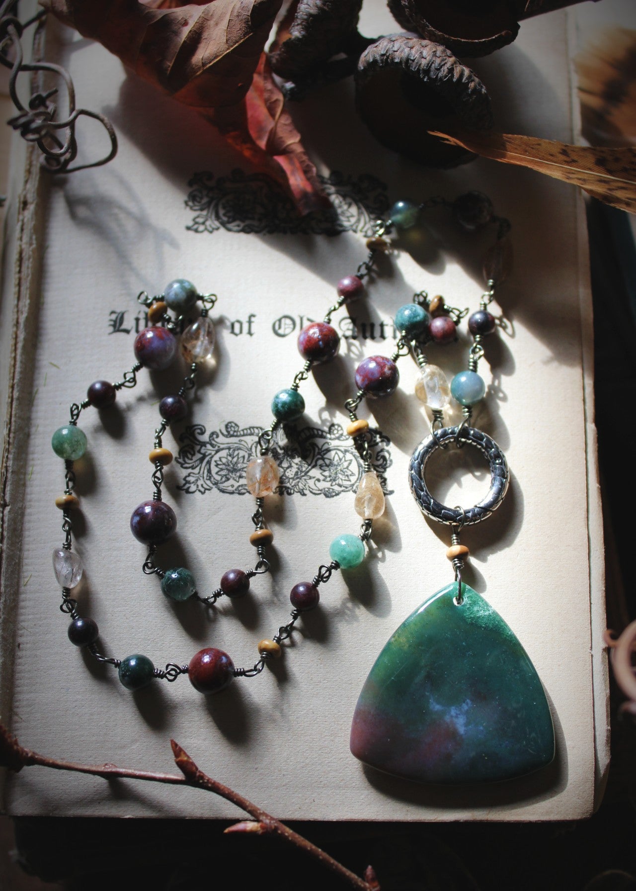 The Forest Haunt | Old Growth. Gemstone Beaded Pendant Necklace.
